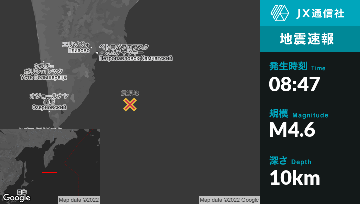 8月28日 08:47頃、ロシアのVilyuchinskから南東174kmの地点でM4.6の地震がありました。