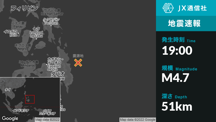 | 震源地 | フィリピンのMarihatagから東71kmの地点 |