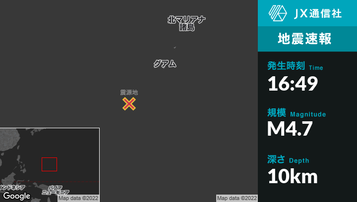 | 震源地 | グアムのMerizo Villageから南西227kmの地点 |