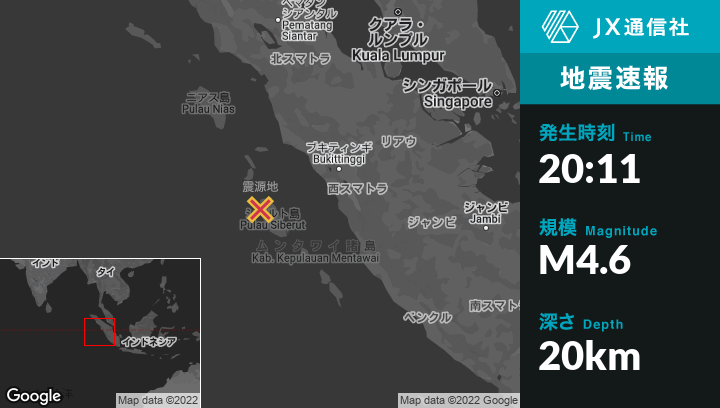 | 震源地 | インドネシアのPariamanから西南西169kmの地点 |