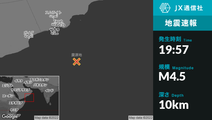 | 震源地 | イエメンのHadibuから北東290kmの地点 |