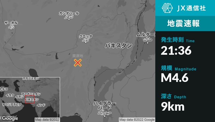 | 震源地 | パキスタンのKalatから西22kmの地点 |