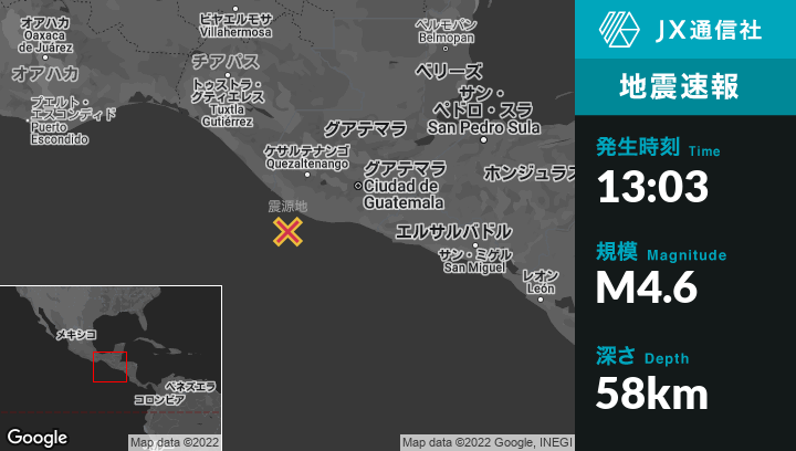 | 震源地 | グアテマラのChampericoから南48kmの地点 |