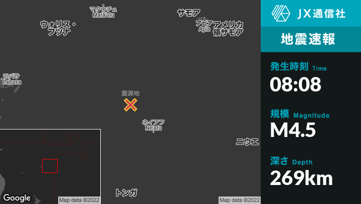 | 震源地 | トンガのNeiafuから北西176kmの地点 |