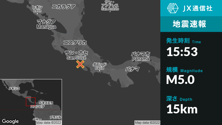 | 震源地 | コスタリカのCiudad Cortésから西34kmの地点 |