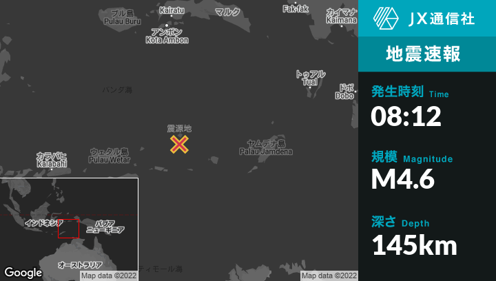 9月04日 08:12頃、東ティモールのLospalosから北東221kmの地点でM4.6の地震がありました。