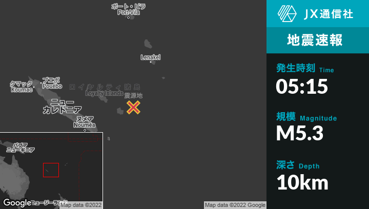 | 震源地 | ニューカレドニアのTadineから東北東75kmの地点 |