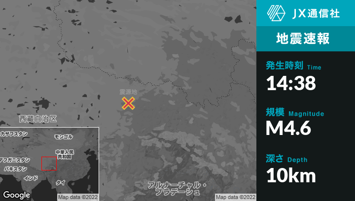 9月05日 14:38頃、中国のNagquから東北東83kmの地点でM4.6の地震がありました。