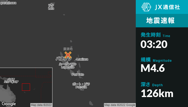 | 震源地 | バヌアツのPort-Olryから北北東28kmの地点 |