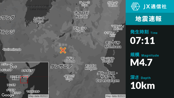| 震源地 | タンザニアのMungaaから東北東29kmの地点 |