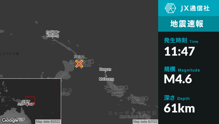 | 震源地 | パプアニューギニアのKokopoから東48kmの地点 |