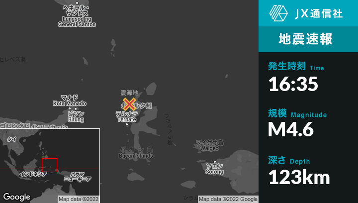 | 震源地 | インドネシアのTobeloから西59kmの地点 |