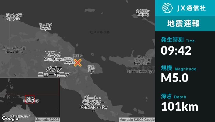 | 震源地 | パプアニューギニアのKainantuから北北東54kmの地点 |