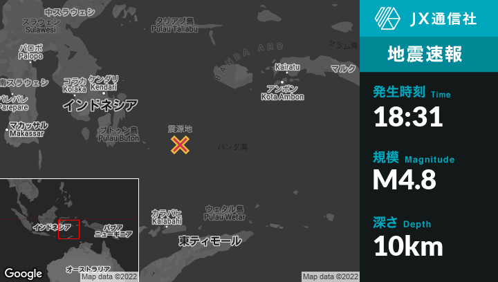 | 震源地 | インドネシアのKatabuから東南東275kmの地点 |