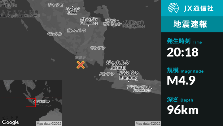 | 震源地 | インドネシアのKotabumiから南西116kmの地点 |