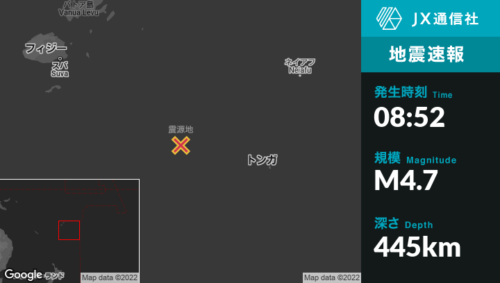 | 震源地 | トンガのHavelulotoから西北西272kmの地点 |