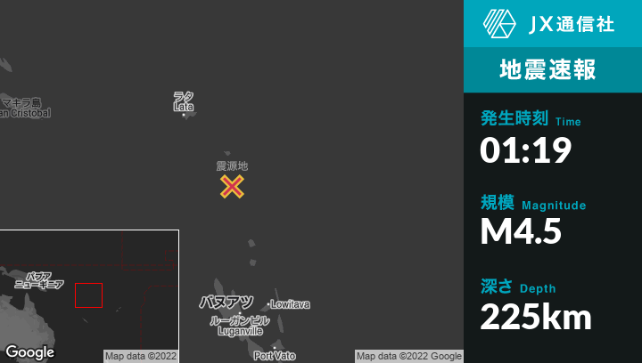 | 震源地 | バヌアツのSolaから北北西180kmの地点 |