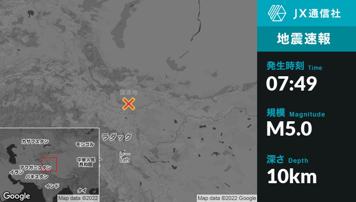 9月16日 07:49頃、インドのThangから北東142kmの地点でM5.0の地震がありました。