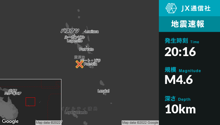 | 震源地 | バヌアツのPort-Vilaから西北西89kmの地点 |