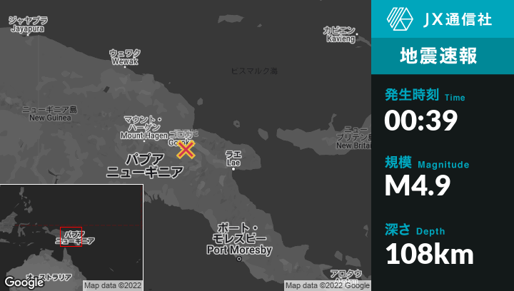| 震源地 | パプアニューギニアのGorokaから北東17kmの地点 |