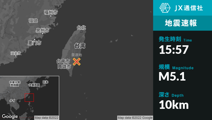 9月18日 15:57頃、台湾のYujingから東79kmの地点でM5.1の地震がありました。