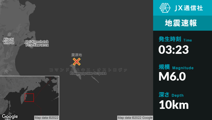 | 震源地 | ロシアのUst’-Kamchatsk Staryyから東南東253kmの地点 |