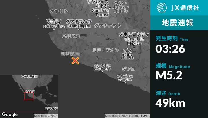 | 震源地 | メキシコのLa Placita de Morelosから西北西3kmの地点 |