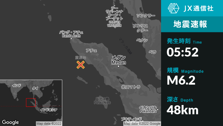 | 震源地 | インドネシアのMeulabohから南南西40kmの地点 |