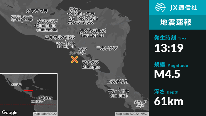 | 震源地 | ニカラグアのCorintoから南西46kmの地点 |