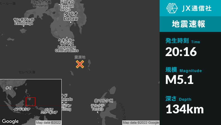 | 震源地 | フィリピンのSaranganiから南南東138kmの地点 |