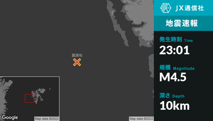 | 震源地 | スヴァールバル諸島とヤンマイエンのLongyearbyenから西南西170kmの地点 |