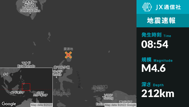 | 震源地 | インドネシアのTobeloから北北東120kmの地点 |
