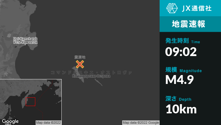 | 震源地 | ロシアのUst’-Kamchatsk Staryyから東南東256kmの地点 |
