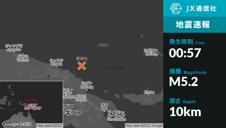 | 震源地 | パプアニューギニアのAngoramから東北東166kmの地点 |