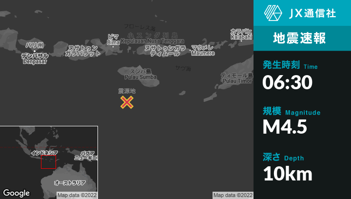 | 震源地 | インドネシアのWaingapuから南西162kmの地点 |