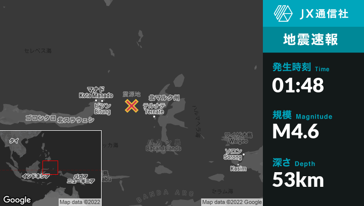 | 震源地 | インドネシアのTernateから西北西128kmの地点 |