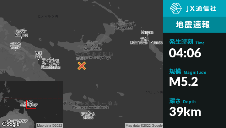 | 震源地 | パプアニューギニアのKandrianから南南東104kmの地点 |