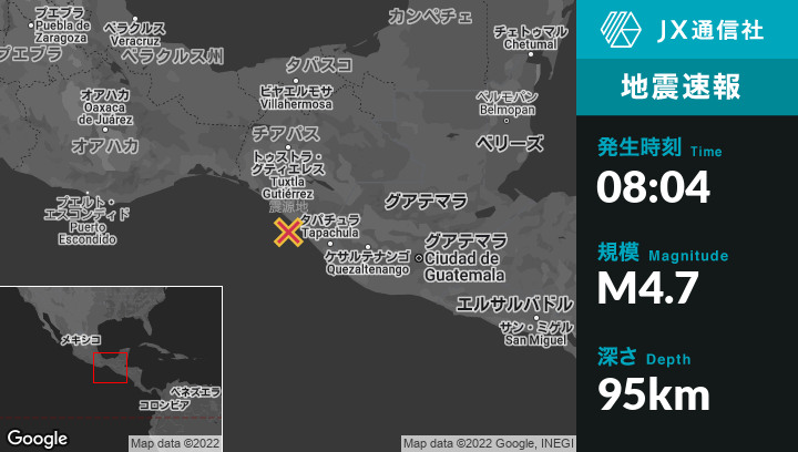 | 震源地 | メキシコのLa Esperanza (El Zapotal)から南南東23kmの地点 |
