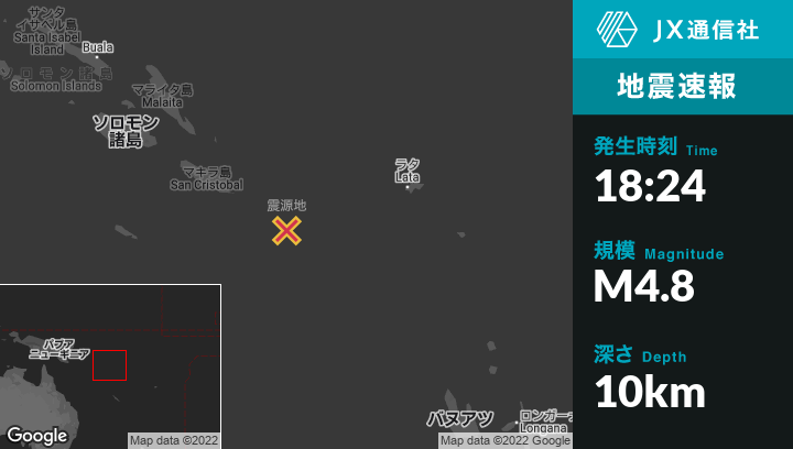 | 震源地 | ソロモン諸島のKirakiraから南東195kmの地点 |