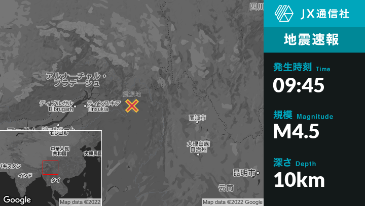 | 震源地 | インドのHayuliangから東南東97kmの地点 |