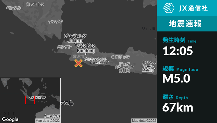 | 震源地 | インドネシアのBanjarから西南西48kmの地点 |