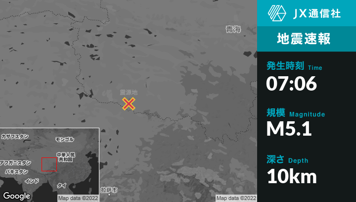 11月02日 07:06頃、中国のNagquから北190kmの地点でM5.1の地震がありました。