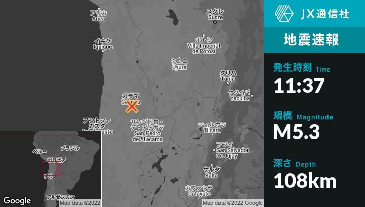 | 震源地 | チリのCalamaから北北東13kmの地点 |