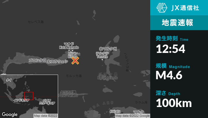 | 震源地 | インドネシアのTondanoから南東70kmの地点 |
