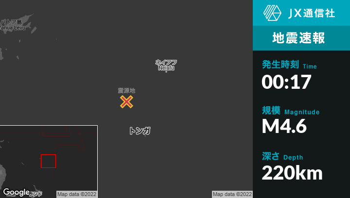 | 震源地 | トンガのPangaiから西148kmの地点 |