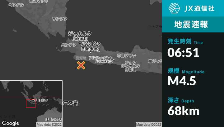 | 震源地 | インドネシアのBanjarから南西78kmの地点 |