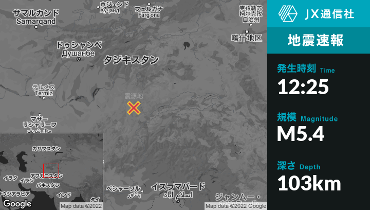 | 震源地 | アフガニスタンのJurmから東北東32kmの地点 |