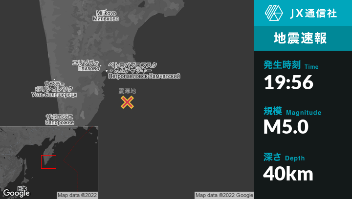 11月07日 19:56頃、ロシアのVilyuchinskから南東106kmの地点でM5.0の地震がありました。