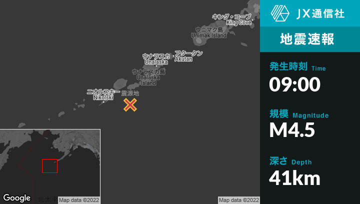 | 震源地 | アラスカのNikolskiから東78kmの地点 |