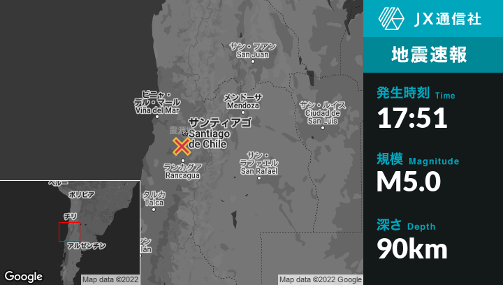 11月08日 17:51頃、チリのBuinから北北西5kmの地点でM5.0の地震がありました。